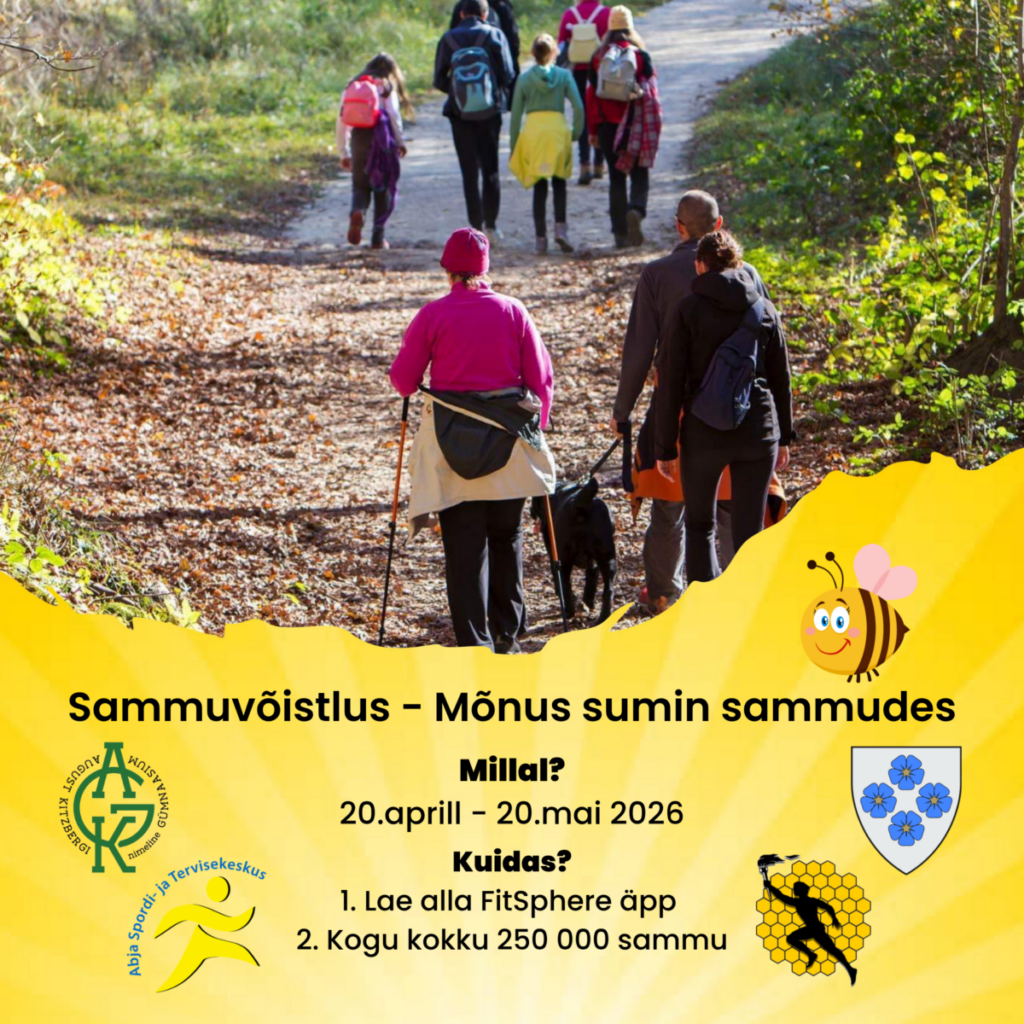 Parim viis oma tervisega tegelemiseks on tegeleda regulaarselt liikumisharrastusega. Kutsume Mulgi valla elanikke ja Mulgi vallaga seotud inimesi osalema Mulgi vallas sammuvõistlusel „Mõnus sumin sammudes“ 20.04-20.05.2026.